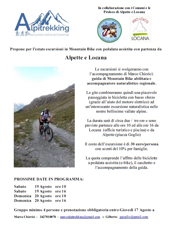 Le gite combineranno quindi una piacevole passeggiata in bicicletta con basso sforzo (grazie all’aiuto del motore elettrico) ad un’interessante escursione naturalistica nelle nostre bellissime vallate alpine.