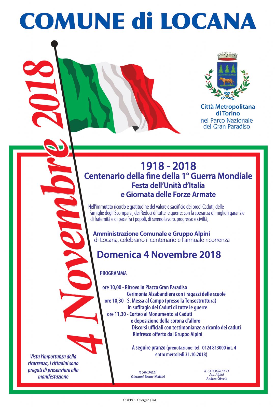 | Organizzazione | Amministrazione Comunale e Gruppo Alpini di Locana |