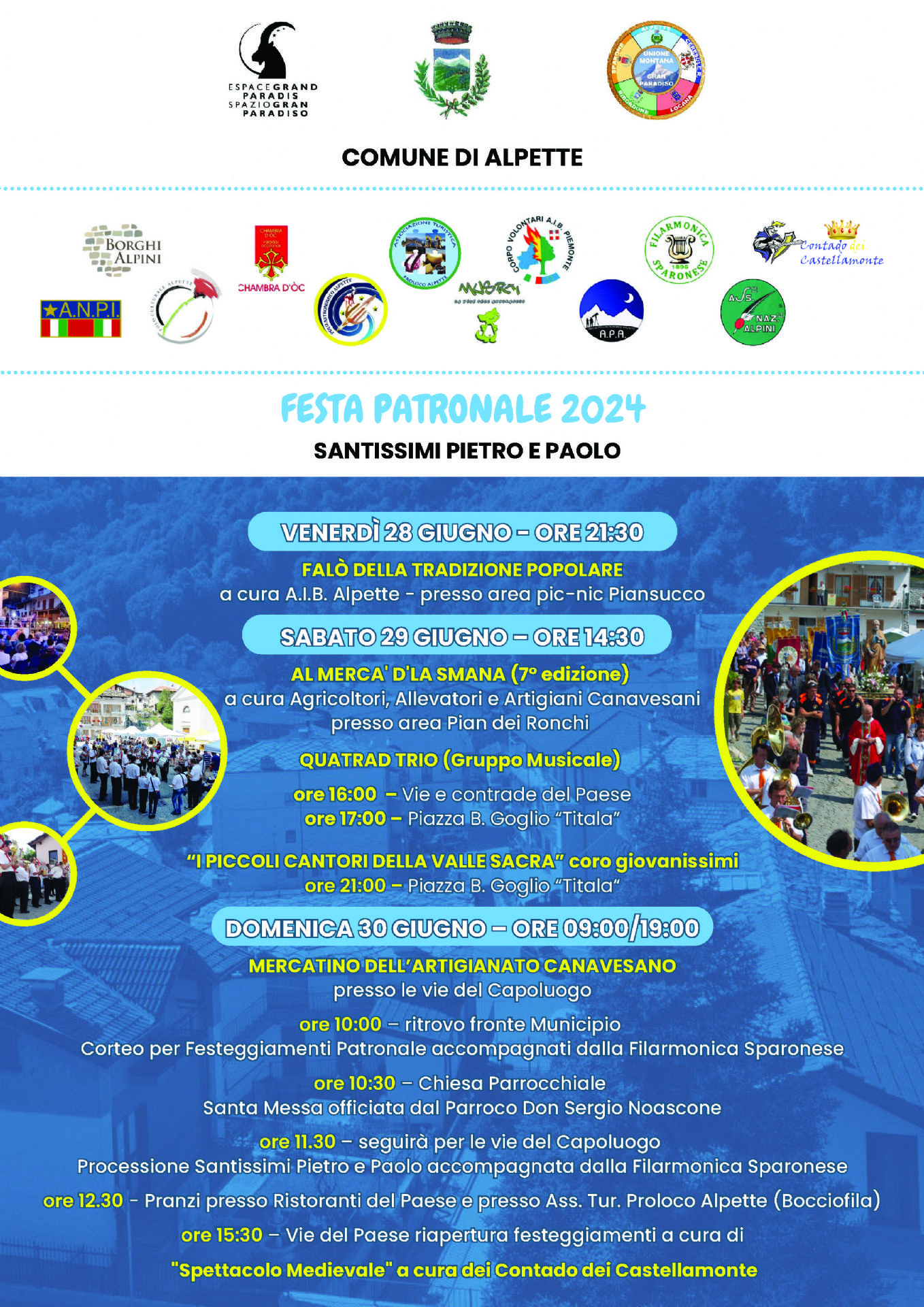 Venerdì 28, sabato 29 e domenica 30 giugno 2024 si svolgerà la festa patronale dei Santi Pietro e Paolo come da allegato programma.