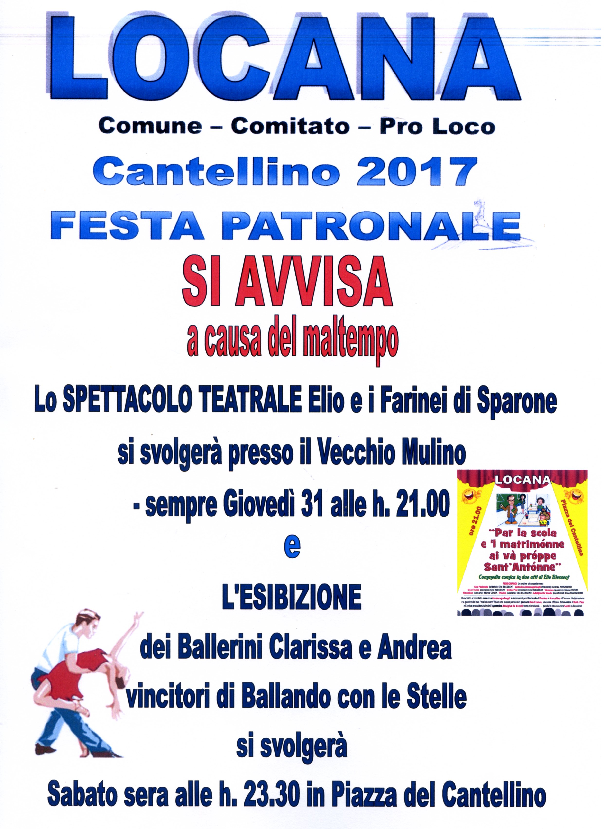 l' Esibizione dei ballerini Clarissa e Andrea vincitori di Ballando con le Stelle si svolgerà invece, Sabato sera alle ore 23.30 in Piazza del Cantellino