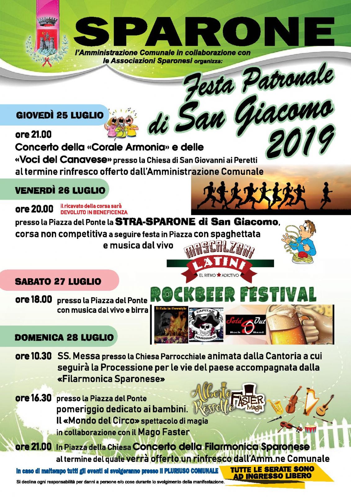 L'Amministrazione Comunale di Sparone in collaborazione con le Associazioni Sparonesi organizza la Festa Patronale di San Giacomo 2019