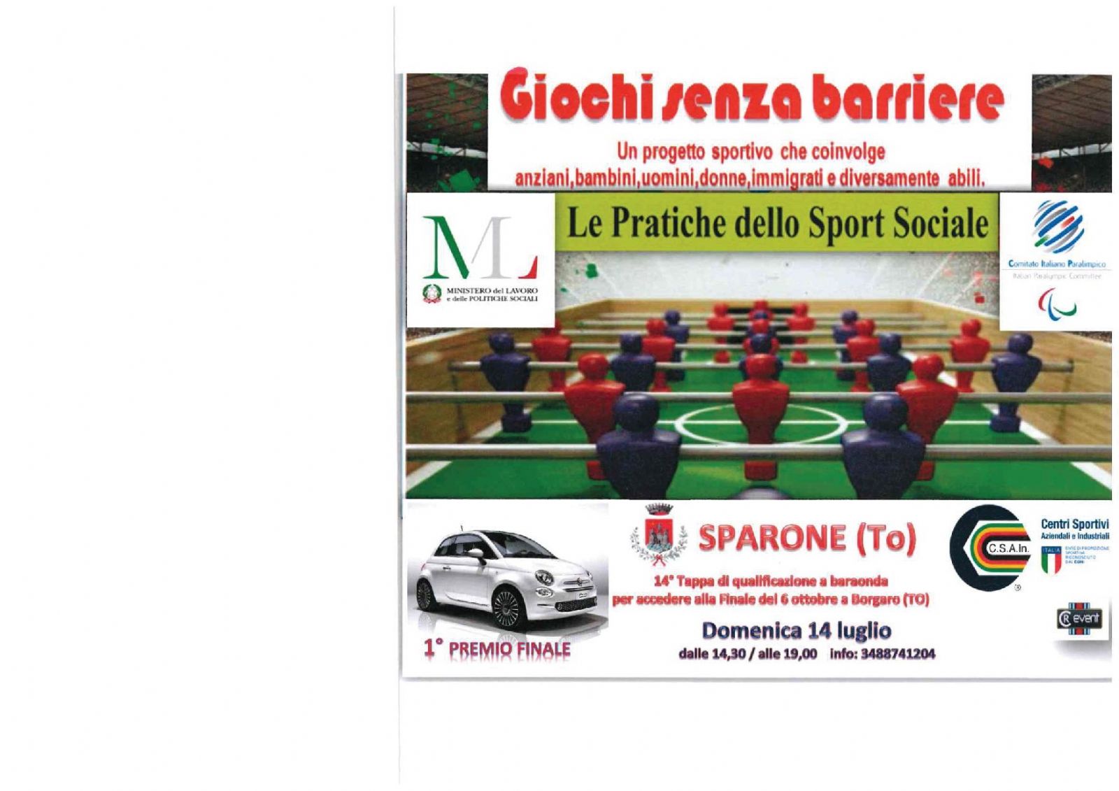 GIOCHI SENZA BARRIERE - DOMENICA 14 LUGLIO 2019 - 14° TAPPA DI QUALIFICAZIONE A BARAONDA PER ACCEDERE ALLA FINALE DEL 06.10.2019 - 1°premio finale: FIAT 500