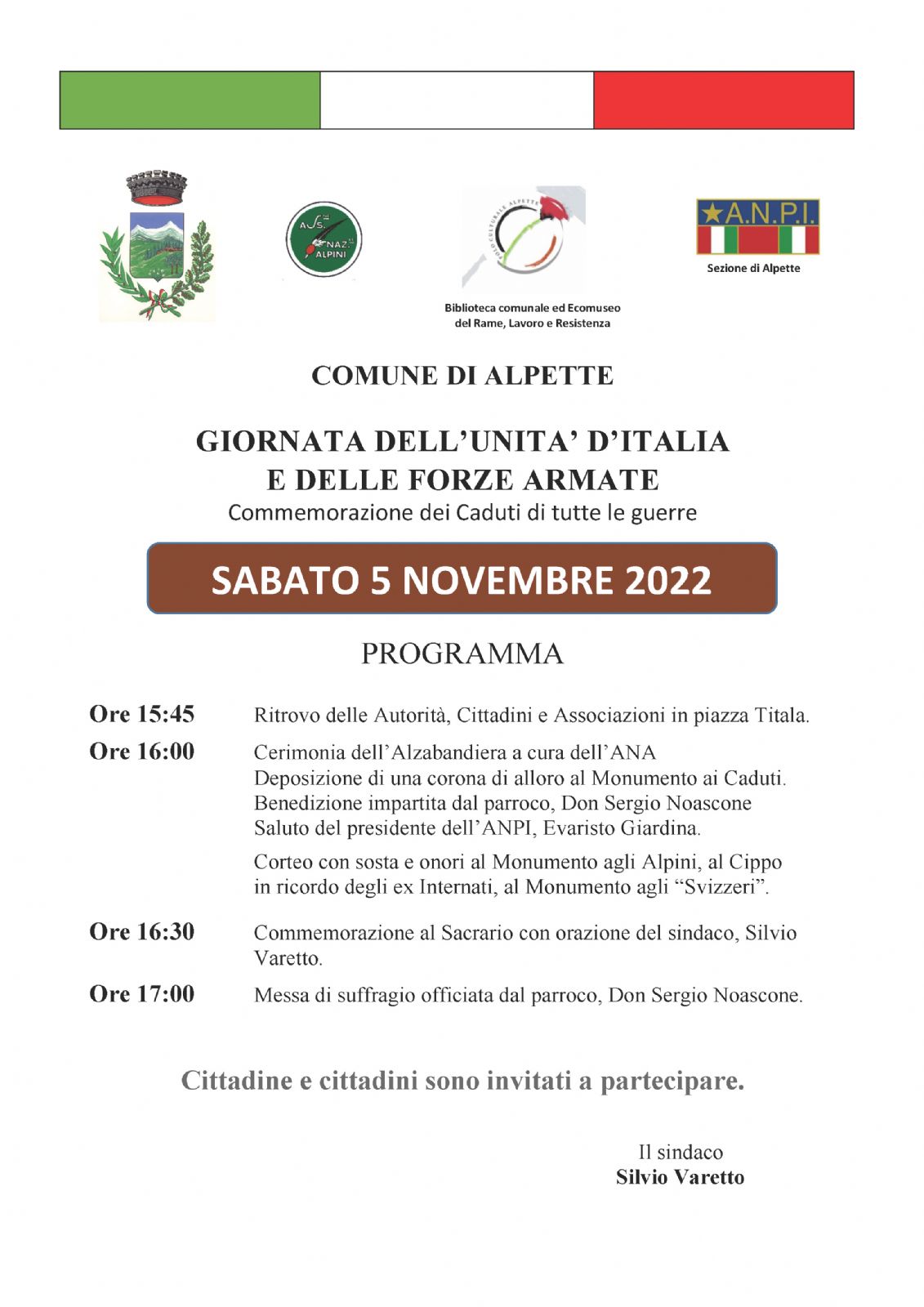 Sabato 5 novembre 2022 avrà luogo la commemorazione dei caduti di tutte le guerre, il programma: