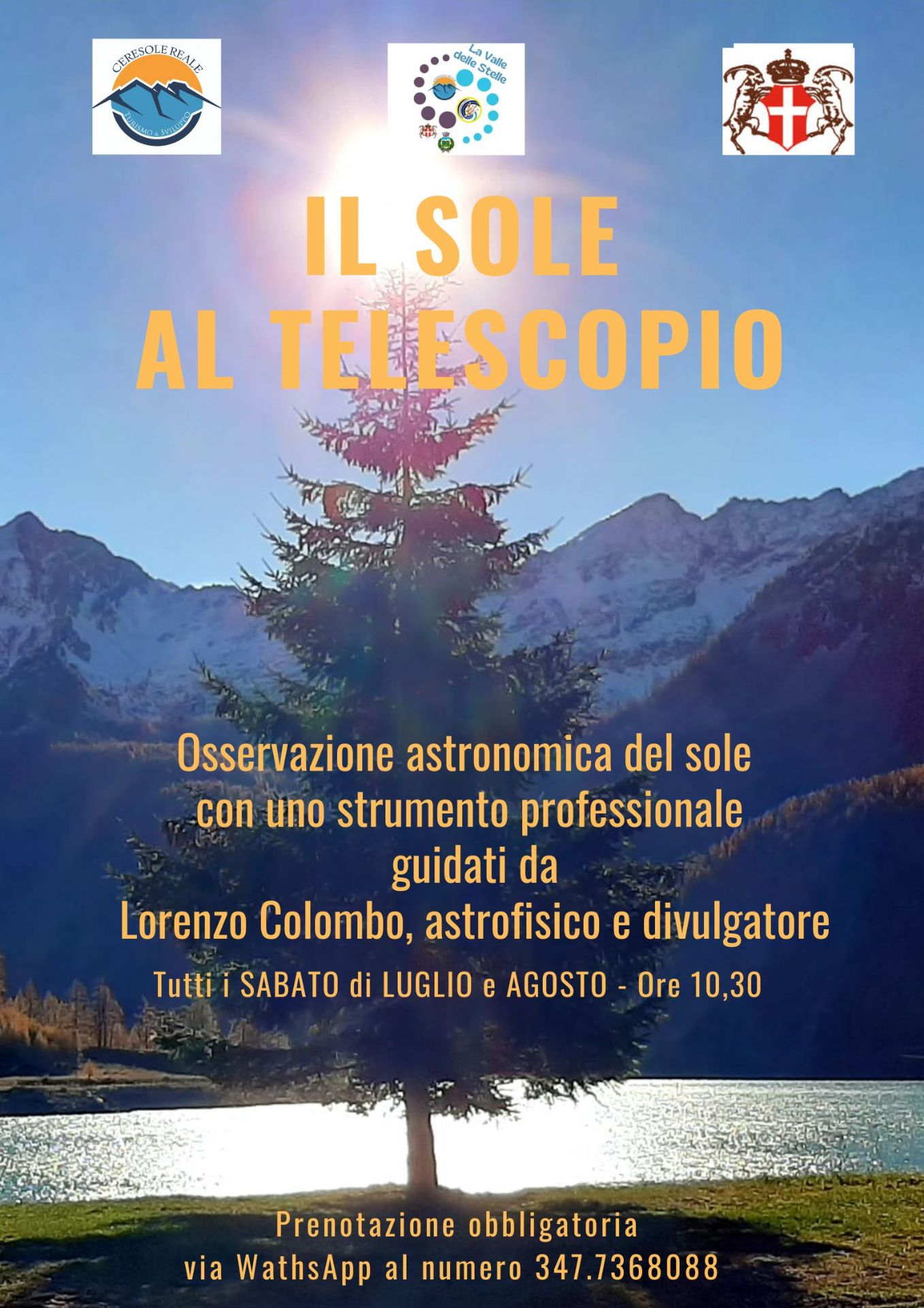Osservazione del Sole alla scoperta dei suoi segreti, utilizzando uno strumento professionale guidati da Lorenzo Colombo, astrofisico e divulgatore.