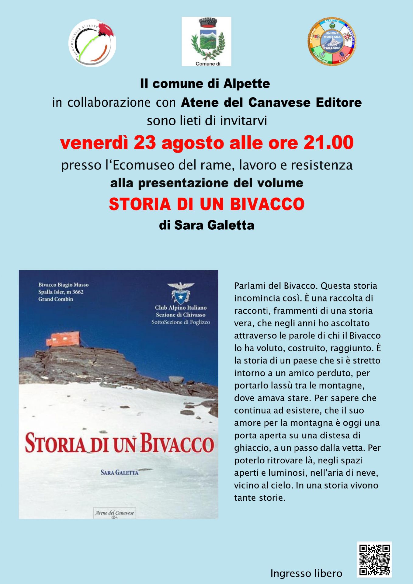 Presentazione del volume "Storia di un bivacco" di Sara Galetta.