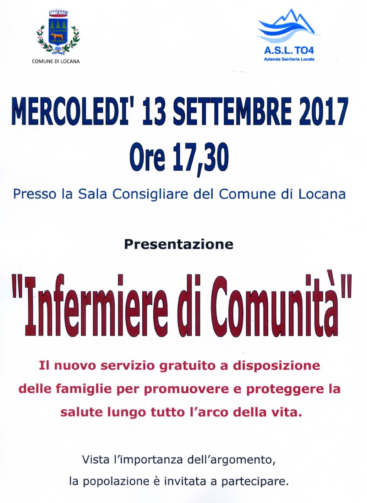 | Organizzazione | Comune di Locana e ASL TO4 |