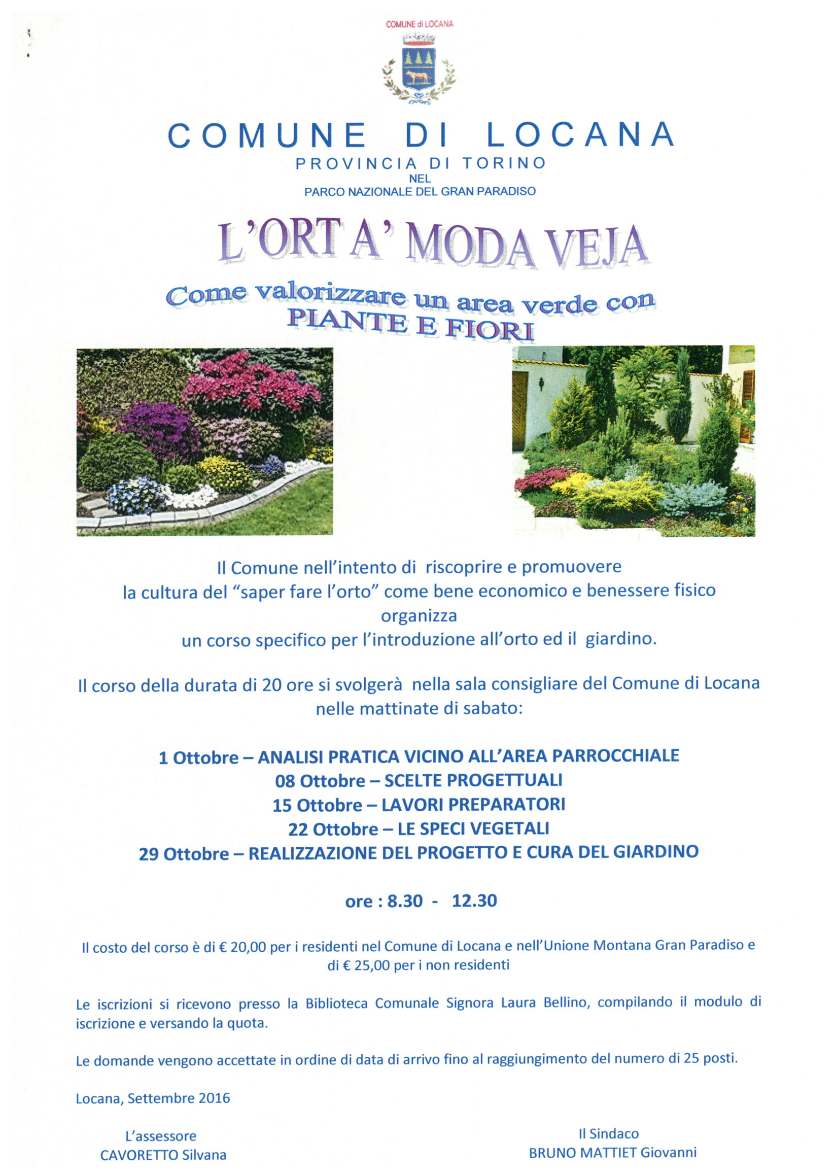 Il corso della durata di 20 ore si svolgerà nella sala consigliare del Comune di Locana nelle mattinate di sabato: