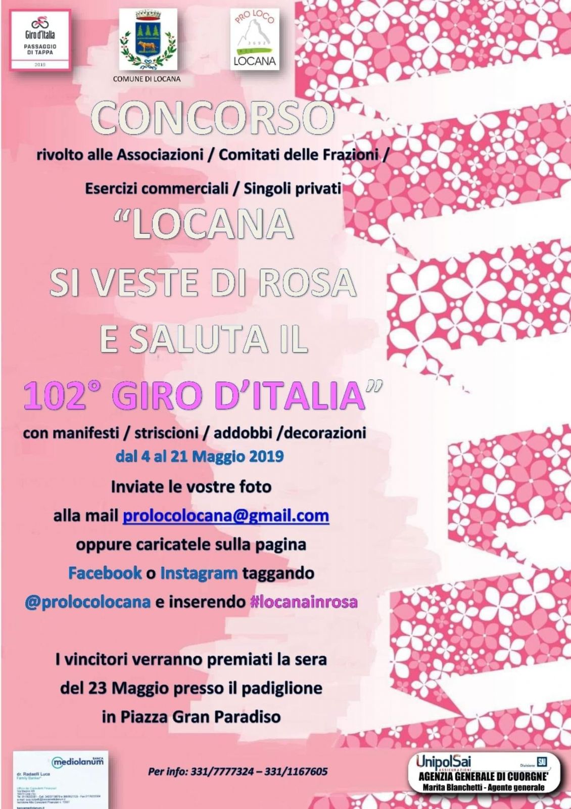oppure caricatele sulla pagina Facebook o Instagram taggando @prolocolocana e inserendo #locanainrosa