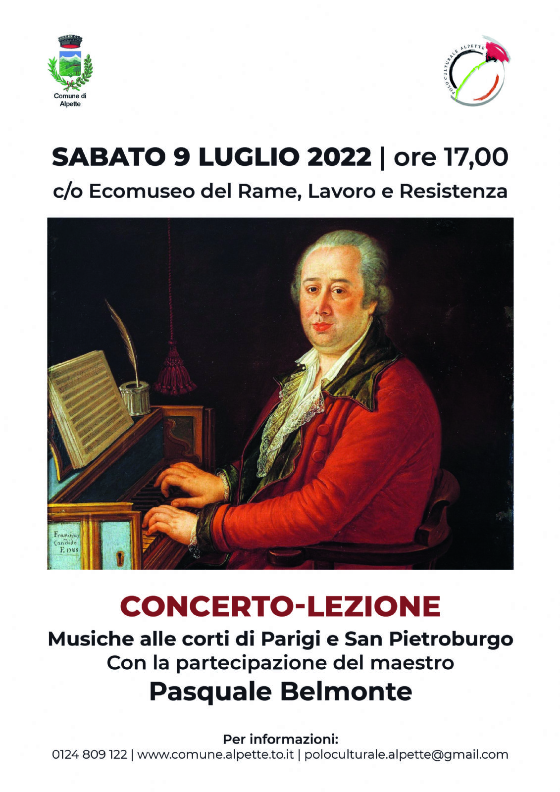 Concerto-lezione con la partecipazione del Maestro Pasquale Belmonte c/o l'Ecomuseo del rame, lavoro e resistenza alle ore 17:00.