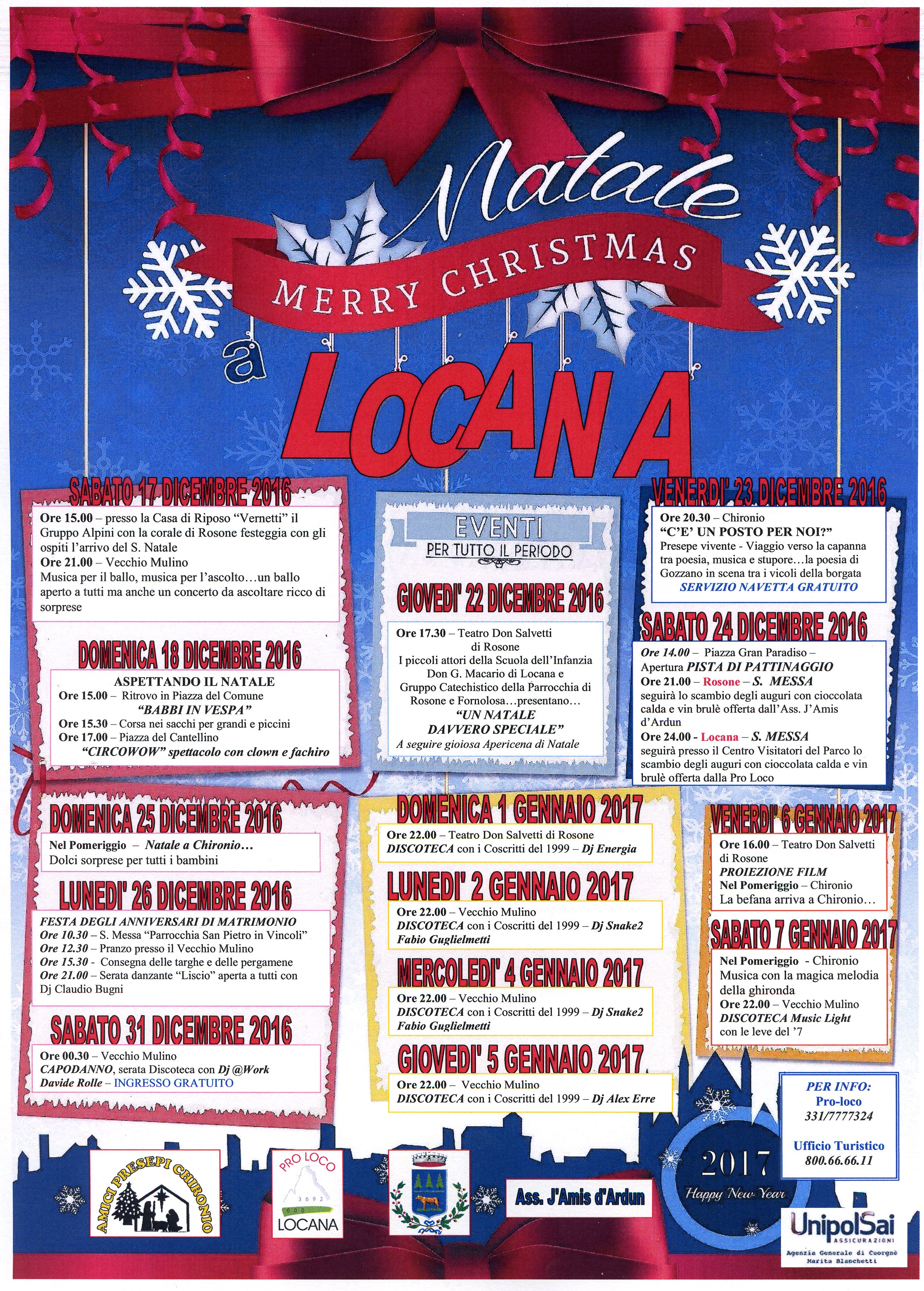 | Organizzazione | Comune di Locana; Pro-loco Locana; Amici Presepi Chironio; J'Amis d'Ardun |