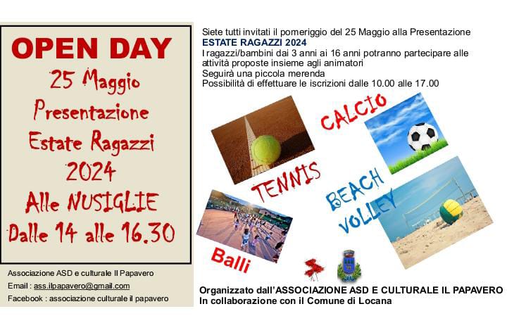 Siete tutti invitati il pomeriggio del 25 Maggio alla presentazione Estate Ragazzi 2024