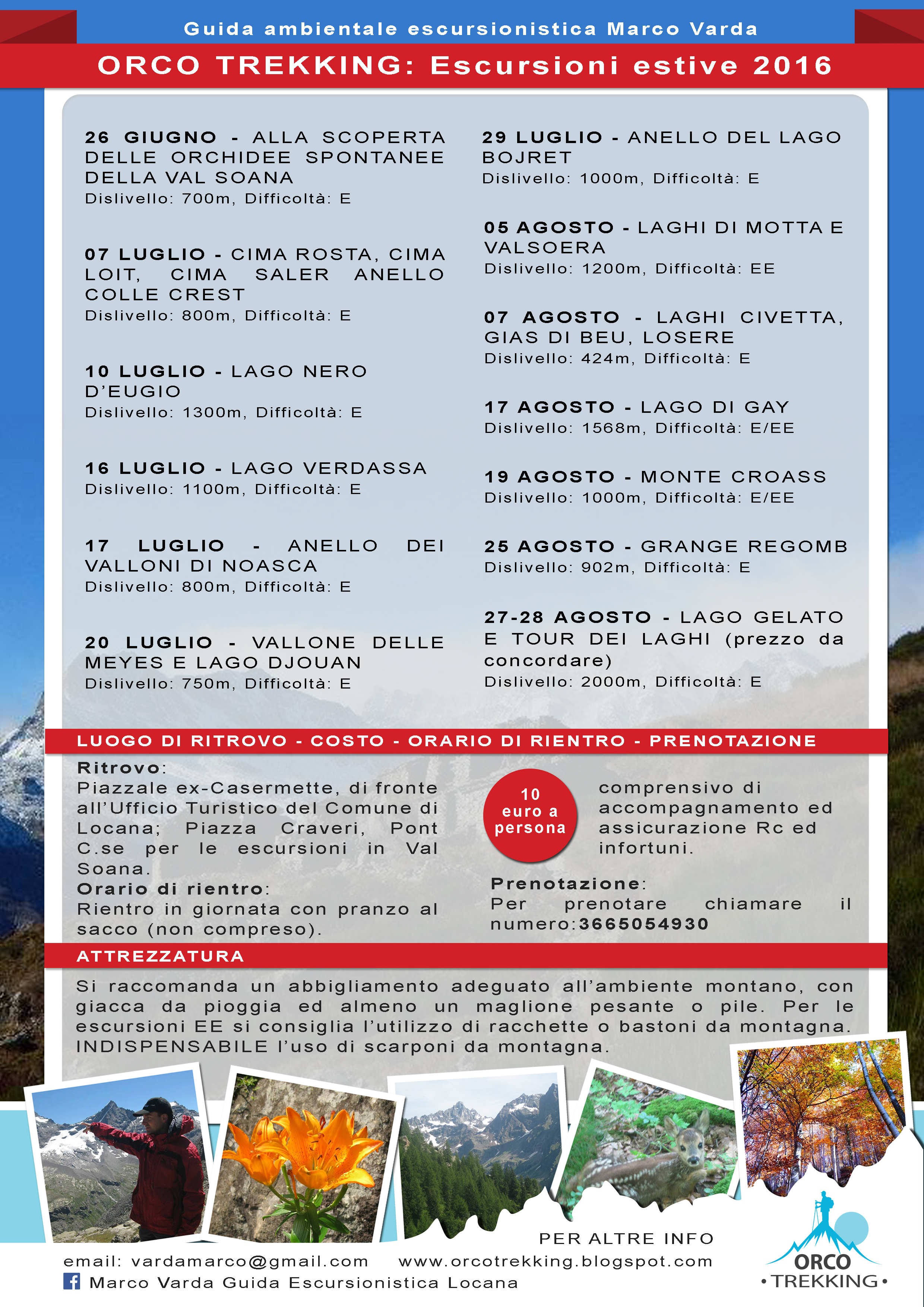 Ecco a voi il calendario estivo 2016 di Orco Trekking.