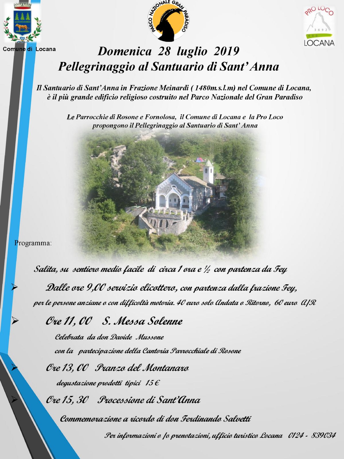 | Organizzazione | Le Parrocchie di Rosone e Fornolosa, il Comune di Locana e la Pro Loco |