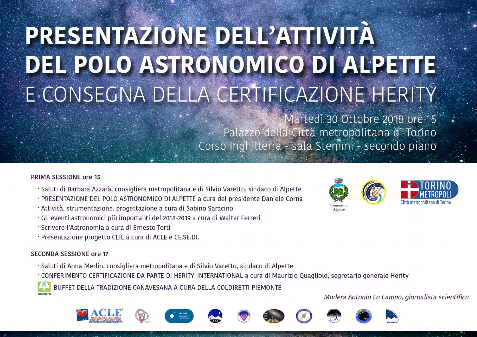 PRESENTAZIONE DELL’ATTIVITÀ DEL POLO ASTRONOMICO DI ALPETTE