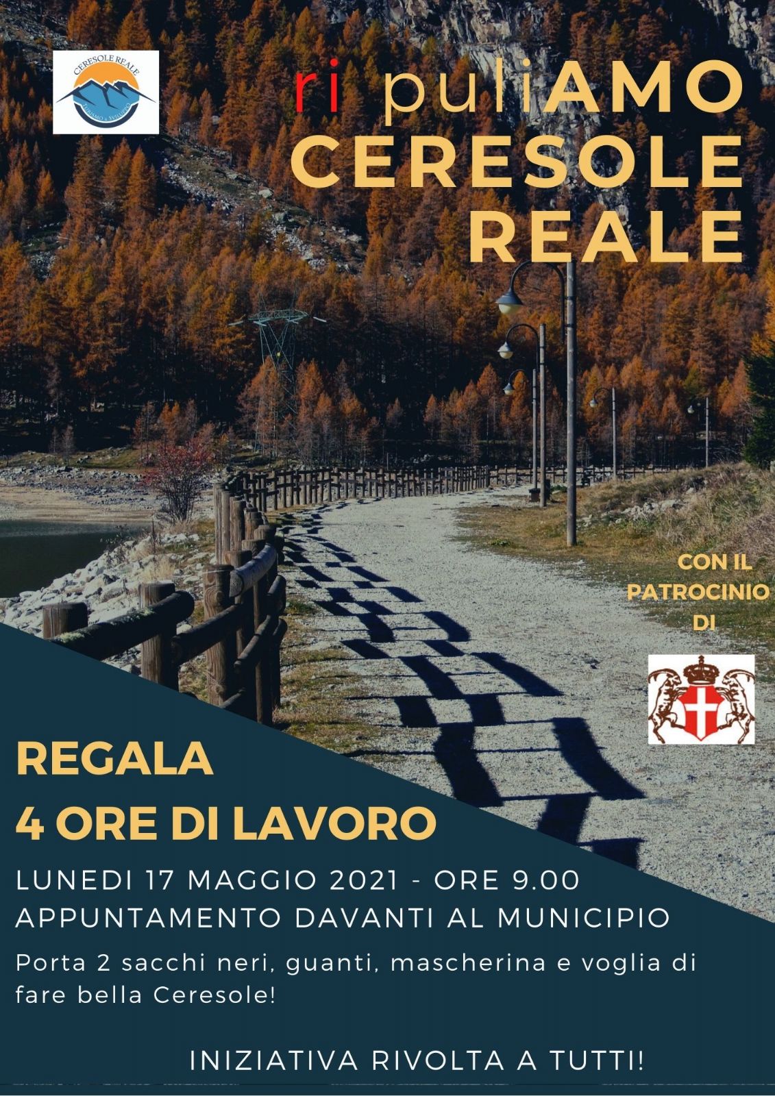 Regala 4 ore di lavoro: porta due sacchi neri, guanti, mascherina e voglia di fare bella Ceresole!