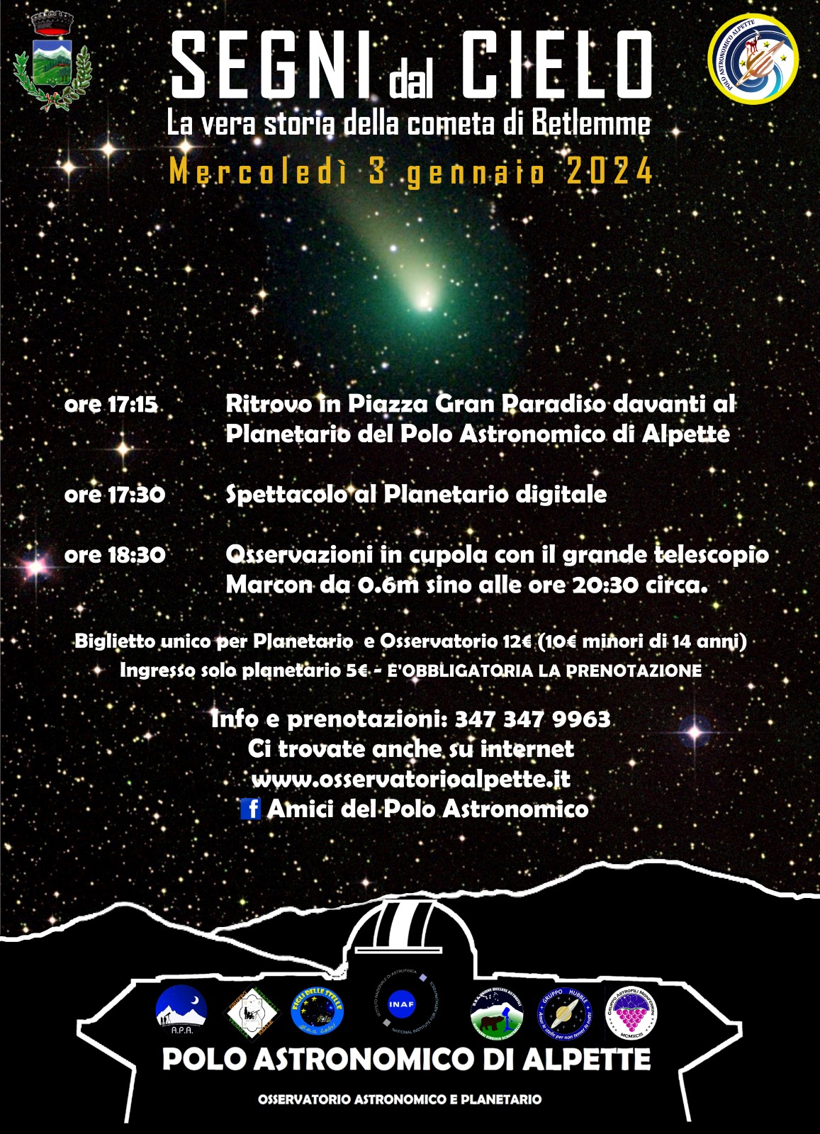 Ore 17.15 - ritrovo presso Piazza Gran Paradiso davanti al Planetario Digitale di Alpette e inizio spettacolo alle 17.30
