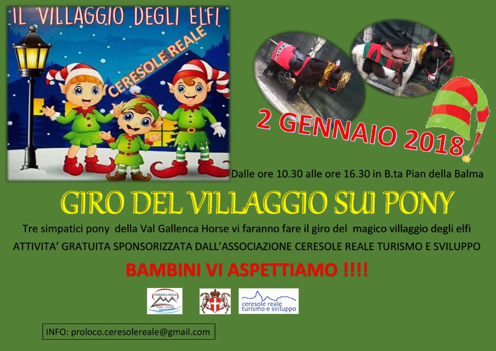 dalle ore 10.30 alle ore 16.30 giro del villaggio degli elfi sui pony. Attività gratuita