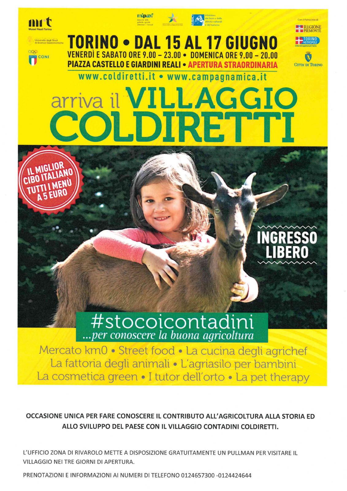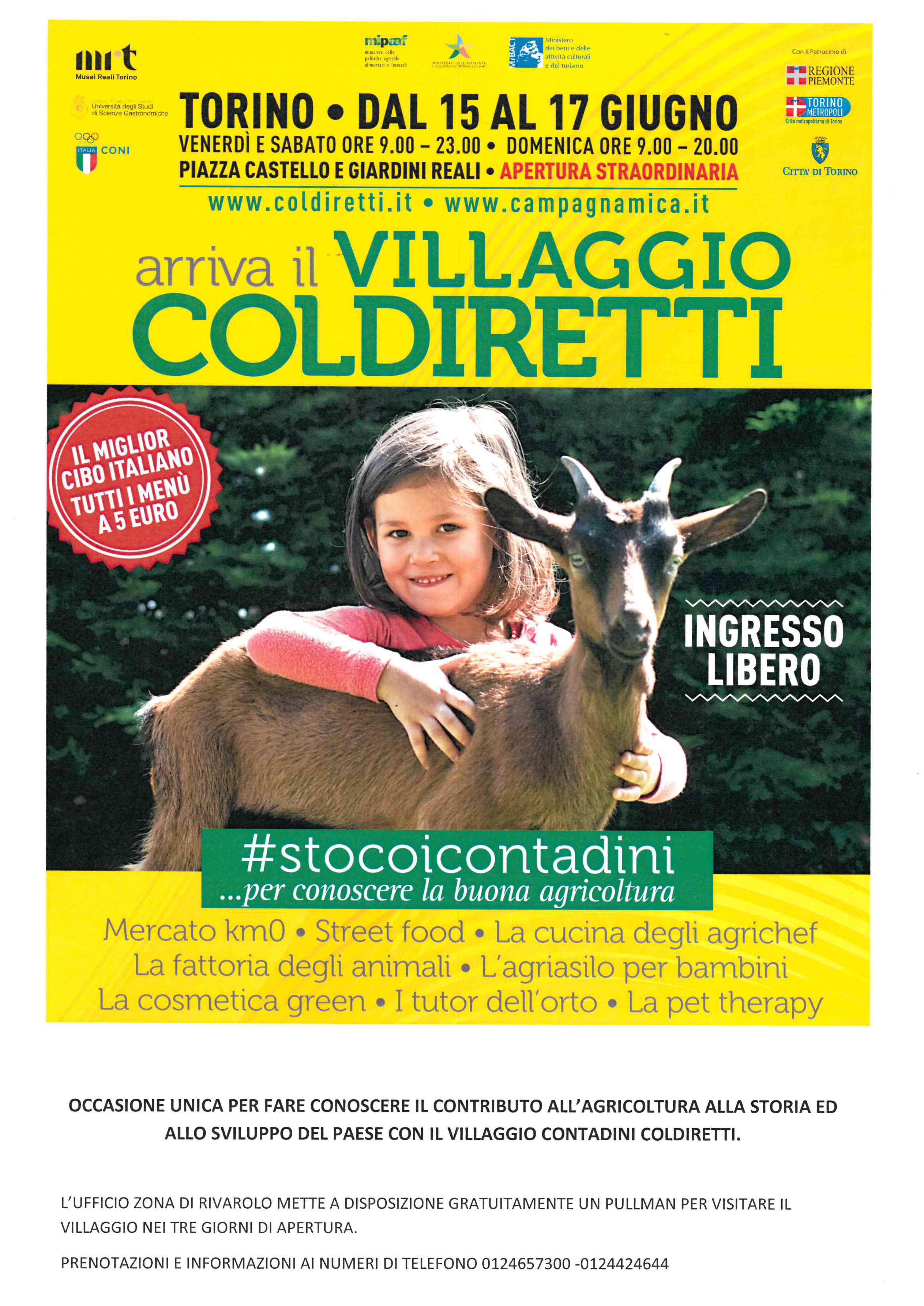 TORINO La prima Capitale del Regno di Italia è stata scelta per far conoscere il contributo dell’agricoltura alla storia e allo sviluppo del Paese con il Villaggio contadino della Coldiretti che sarà inaugurato alle ore 9 di venerdì 15 giugno, per restare aperto tutto il weekend, con l’apertura straordinaria al pubblico dei Giardini reali superiori per l’esclusivo abbinamento tra cultura ed enogastronomia che rappresentano l’elemento trainante della vacanza Made in Italy.