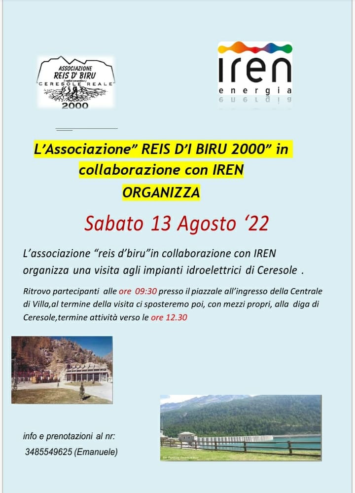 L'associazione Reis d'Biru in collaborazione con IREN organizza una visita agli impianti idroeltrrici dell'alta Valle Orco.