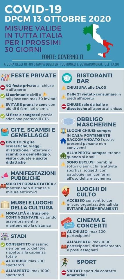 - Scarica il DPCM del 13 ottobre 2020[.pdf 1,61 Mb - 14/10/2020]