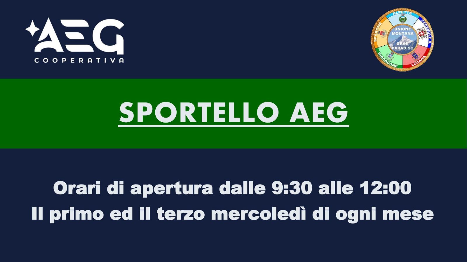 Orario di apertura al pubblico dello Sportello AEG Azienda Energia E Gas Società Cooperativa.