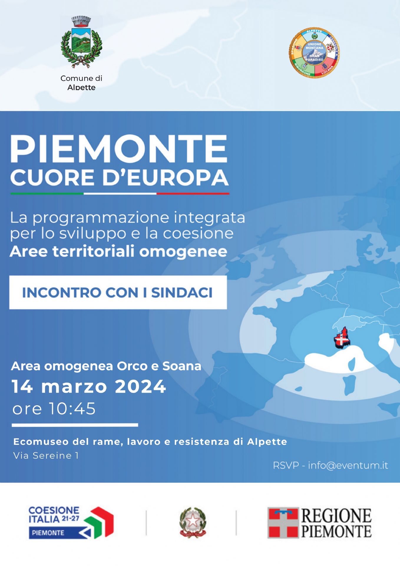 Piemonte Cuore d'Europa - 14 marzo 2024 ore 10:45 presso l'Ecomuseo del rame, lavoro e resistenza di Alpette.