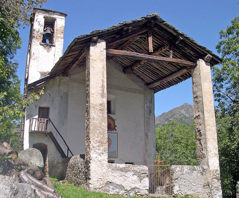 Edificata verso il 1760 la chiesa fu dedicata a San Pancrazio martire e dal 1832 anche alla Consolata. L'interno, affrescato dal pittore Antonio Frola da Montanaro nel 1888, presenta un altare in laterizio staccato dalla parete sormontata dalla pregevole pala del 1924 che raffigura la Consolata e San Pancrazio, realizzata dal pittore Silvestro da Montanaro. Vi sono pure parecchi "ex-voto", uno dei quali del 1766 e la vecchia pala di fattura settecentesca. La facciata fu affrescata dal pittore Silvestro nel 1906 ed è sovrastata da un ampio porticato ed a fianco il campanile, ricostruito nel 1884. Poco distante dalla cappella vi è l'edificio della vecchia scuola elementare, risalente agli inizi dell'800, dove vi hanno sempre insegnato maestri laici fino al 1960, quando la scuola fu chiusa.