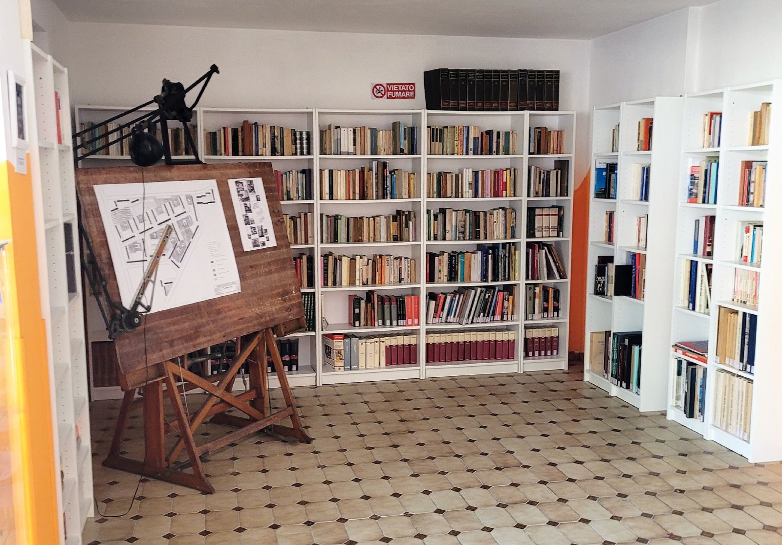 Sopravvenute nuove esigenze di spazio, la biblioteca viene spostata negli adiacenti locali di Casa Alpette, luogo ove ancora oggi sono presenti alcuni volumi.